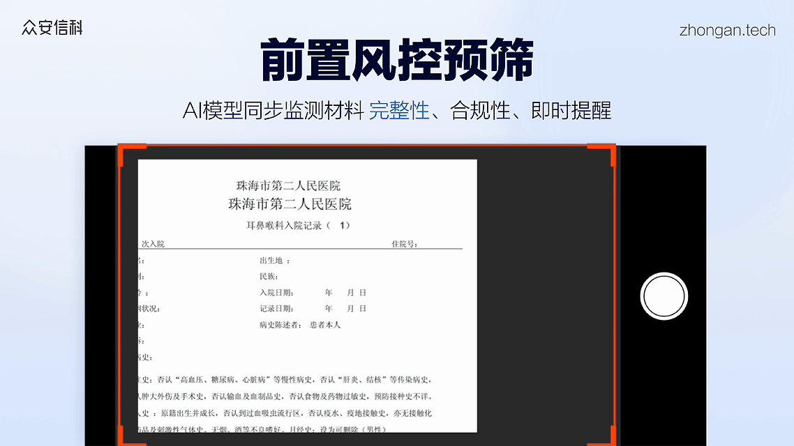 众安信科AI理赔助理可以在这个环节把风控关口前移,改变这种被动局面。当客户发起报案时,「报案受理Agent」会基于业务知识库动态生成材料清单,并实时筛查影像材料的合理性、合法性和完整性。比如,资料是否出现了关键遮挡?上传的材料与被保人身份是否校验一致?原本需要理赔员后期反复沟通的缺件、错件问题,在入口处就会被拦截解决。