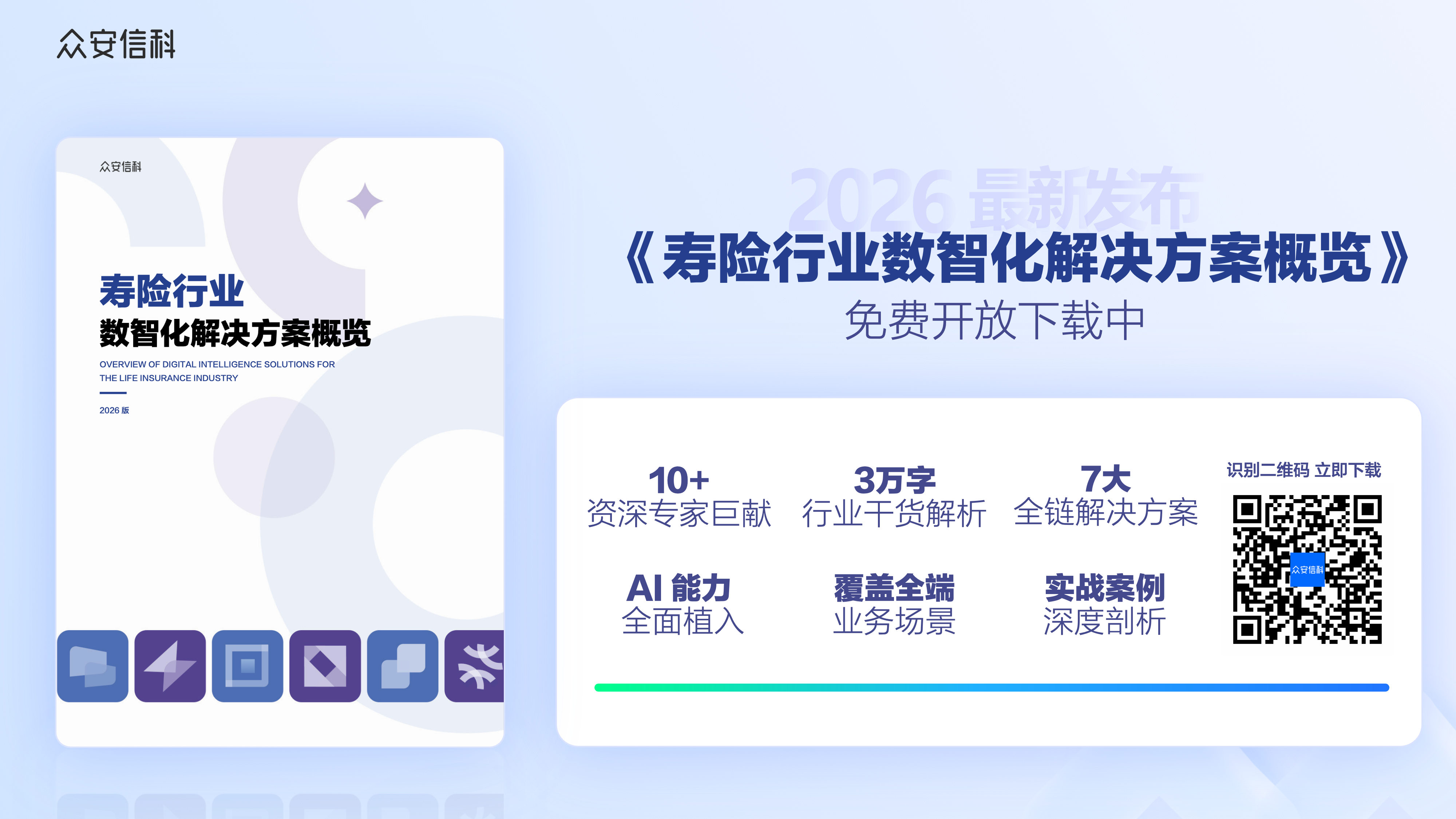 众安信科基于深厚的保险科技全栈实践,系统性地输出了这套覆盖前、中、后台的智能化全景图,期待《寿险行业数智化解决方案》能够助力寿险机构在转型深水区不仅看清方向,更能掌握方法,共同迈向一个更专业、更高效、更可持续的智能化新时代。