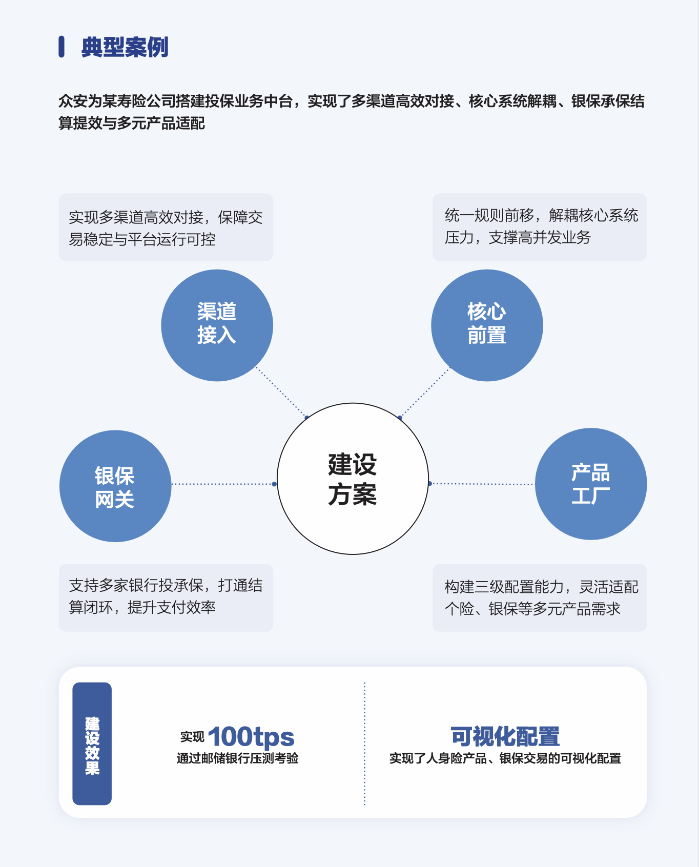 高可用业务中台:通过“前端接入-中台调度-后台支撑”的架构,封装试算、核保等标准化能力,不仅能稳扛十倍峰值流量,更实现了跨渠道的高效协同与核心系统的解耦保护。